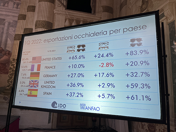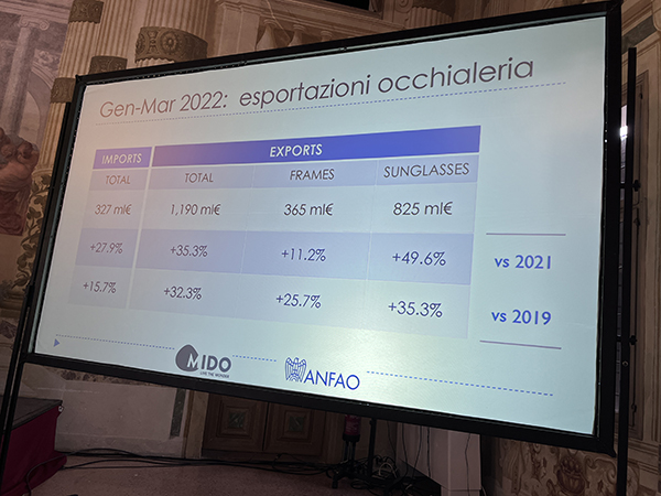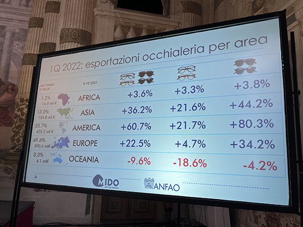 Dai dati presentati è emerso quanto il primo trimestre 2022 sia stato positivo per il settore dell’occhialeria italiana, soprattutto in relazione alle esportazioni: i dati ANFAO riferiti al periodo gennaio-marzo segnano infatti +32.3% rispetto allo stesso periodo del 2019 e +35.3% rispetto al 2021.  Questo conferma il trend di crescita che aveva fatto concludere il 2021 con il segno “più”, riportando il comparto ai livelli pre-covid. Grazie alla sua forte propensione internazionale, l’occhialeria è stata infatti tra i settori che meglio hanno saputo reagire alla pandemia.