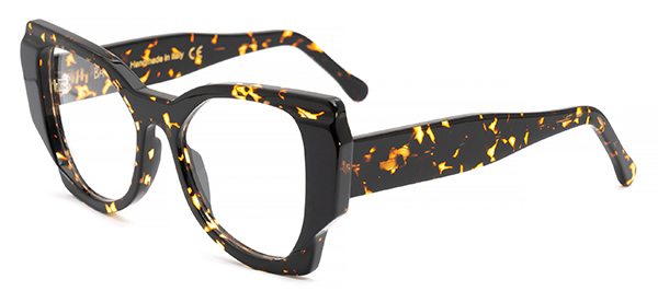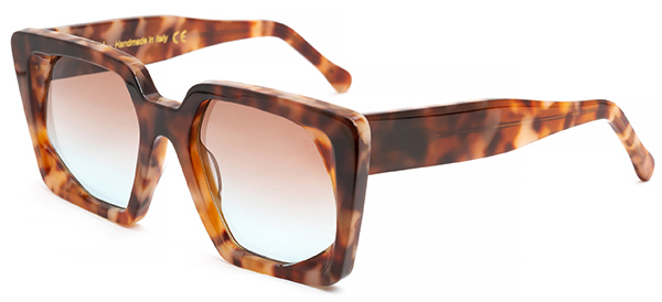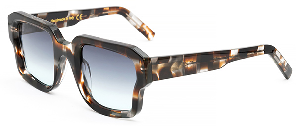 Nella nuova serie di occhiali troviamo un utilizzo inedito delle lastre di acetato, di colori diversi e sovrapposte tra di loro. Ponendo due lastre di colore diverso l’una sull’altra infatti, artigiani specializzati intagliano il frontale, creando differenti spessori da un pezzo