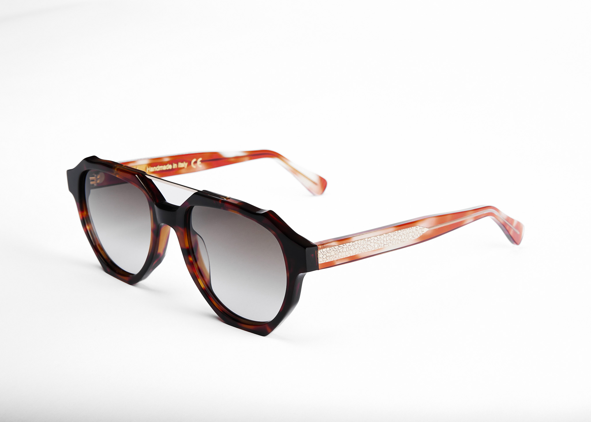 La lavorazione a onde dell’acetato è il fil rouge di questa collezione, nella quale troviamo anche modelli dall’estetica decisamente “statement”, come la montatura esagonale con frontale frastagliato e un round irregolare unico nel suo genere, con oculari a onde ottagonali e un’asta a forma di violino, che porta alla mente la creatività di Breuer e la sua capacità di trasformare materiali industriali in oggetti di design eleganti e funzionali, arricchite da particolari unici.