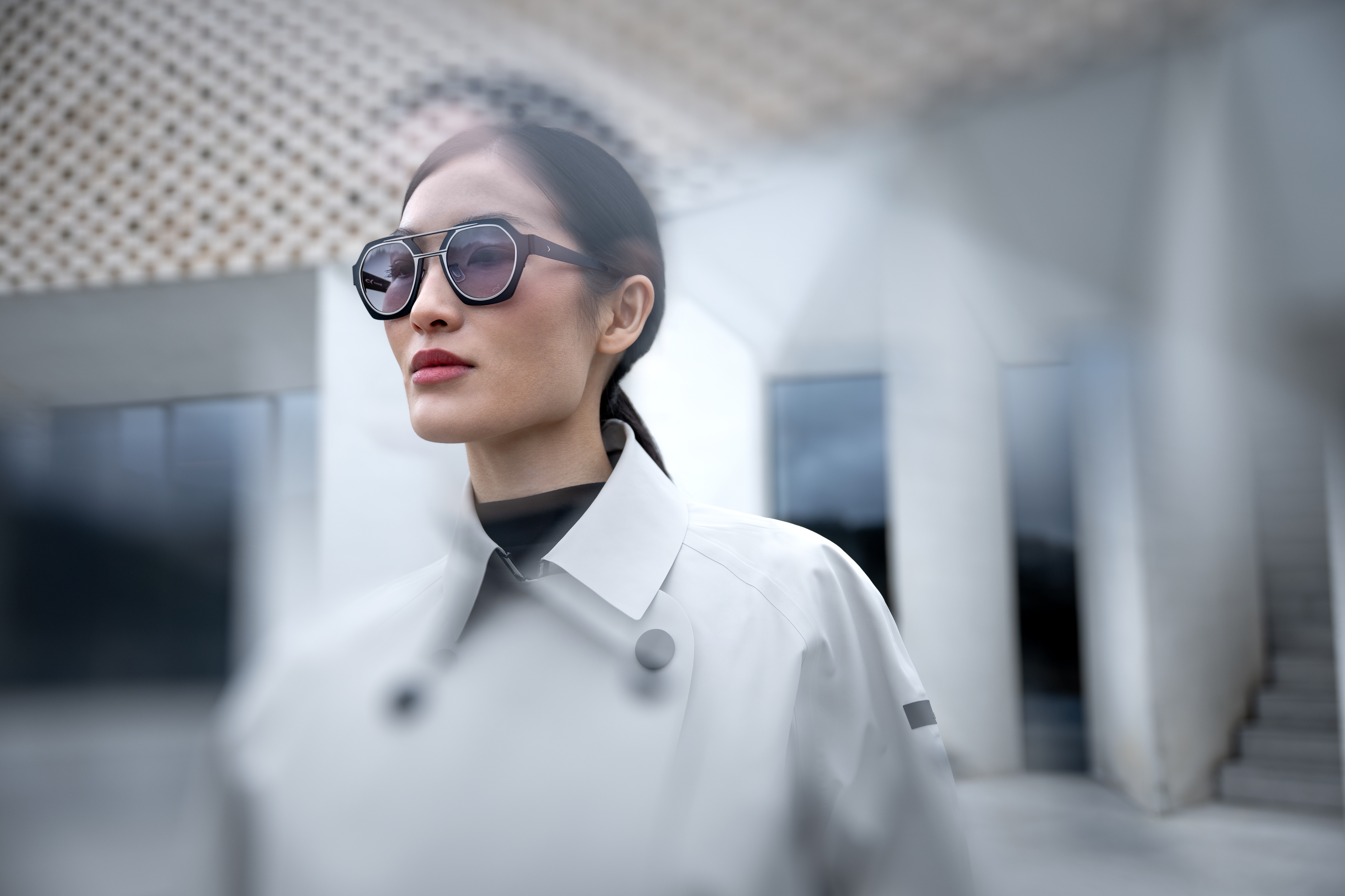 Iron Harbor e Coronado interpretano questa ricerca attraverso un frontale a doppio livello, capace di creare un suggestivo effetto shape within shape: più deciso e squadrato nel primo, più morbido e tondeggiante nel secondo. Il ponte introduce un movimento architettonico forte, quasi come una mascherina sovrapposta alla struttura, generando profondità visiva e una dimensione quasi spaziale. Il dialogo tra pieni e vuoti viene amplificato dalle lavorazioni del titanio, mentre le lenti sfumate completano l’insieme con un forte impatto scenico.
