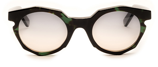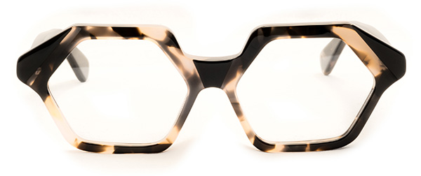 Maxi occhiali decisamente da diva ma dal mood contemporaneo grazie alla lavorazione poligonale. Un importante lavoro di artigianalità ha permesso alle montature di assumere forme geometriche armoniose e alla luce naturale di rifrangersi sulle varie angolature, creando effetti caleidoscopici.