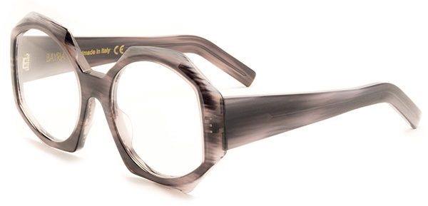 I modelli pantos sono arricchiti da musetti cesellati a mano, o da aste a bandiera bicolor da indossare come gli amati bijoux che Maria Callas faceva realizzare appositamente per i suoi debutti. Grazie alle forme esagonali e alla sovrapposizione di più lastre si creano sorprendenti accostamenti di colori. Le montature sono importanti, con il frontale squadrato e bold, che viene al contempo addolcito da musetti. E ancora, troviamo forme rotonde e frastagliate grazie a un minuzioso lavoro di cesellatura manuale. Molti gli oversize, un classico da diva, che si distinguono però per il mood contemporaneo, merito del design e della lavorazione poligonale. Infine la palette dei colori, che va dai neutri beige, grigio ocra e tartaruga, all’allure del nero fino all’immancabile havana pastello, abbinati a lenti gialle, prugna o fumé.
