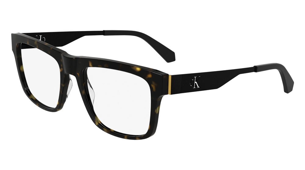 CKJ24632: Resa unica da un intramontabile frontale di forma rettangolare modificata, questa montatura da vista Monogram in acetato è dotata di aste in metallo flat che rivelano un cut-out con il monogramma Calvin Klein, rivisitazione sofisticata e inedita del leggendario emblema del brand. I terminali a forma di diamante in iniettato assicurano una calzata confortevole. Modello disponibile in Dark Havana, Black, Khaki e Clear.