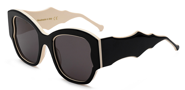 Bayria Eyewear, limited edition AnnAcronista, dedicata ad Anna Piaggi è una montatura butterfly optical, in acetato nero, contrapposto a una lastra beige e prodotta in soli 100 pezzi numerati. Scavature impercettibili permettono che il colore sottostante venga fuori nello spessore immediatamente prima della lente e nel laterale, dove un’asta spessa e dalla forma irregolare e appuntita contrasta la delicatezza della parte frontale. L’accostamento del nero e del beige fa riferimento ai colori della carta stampata sulla quale fluivano le parole della Piaggi, mentre la forma a farfalla, leggiadra e fluttuante, è un invito alla libertà d’espressione, senza limiti e costrizioni.