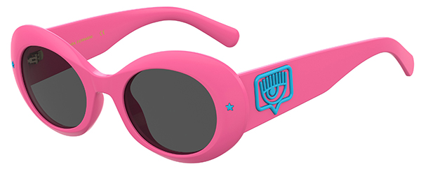 Occhiale da sole femminile dal taglio ovale in propionato di cellulosa siglato dall’iconico logo Eye-Like di Chiara Ferragni sulle aste e dalla distintiva Star in metallo sul frontale, per un feeling da vera diva. Disponibile in nero o bianco ed in esclusive cromie fluo o glitter (mod. CF 7004/S).