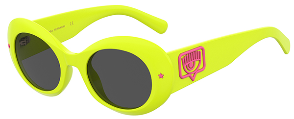 Occhiali da sole e da vista femminili dal taglio cat-eye in propionato di cellulosa: declinazione contemporanea di un design intramontabile, arricchita dall’iconico logo Eye-Like di Chiara Ferragni sulle aste e dalla distintiva Star in metallo sul frontale. Disponibili in una gamma di audaci cromie fluo e glitter oppure classiche (mod. CF 7006/S e CF 7012).