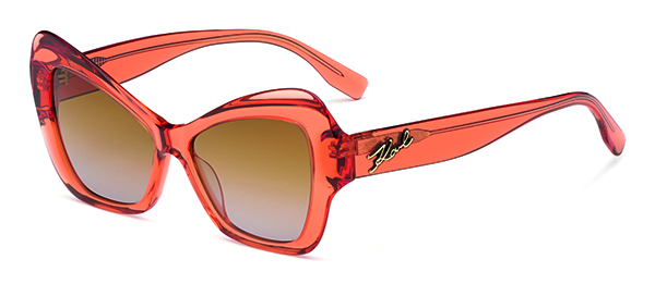 KL6076S–Disponibile in Black, Tortoise e Transparent Orange. Choupette, l’amatissima gatta di Karl Lagerfeld, è l’affascinante ispirazione della silhouette iper-femminile ed esageratamente cat-eye di questo modello da sole. Lenti tinta unita accompagnano una montatura in acetato audace e ultra-sottile per un look leggero e ad alto tasso di comfort. L’inconfondibile logo Karl sulle aste, firma stilosa e intima, è una dedica all’impareggiabile amica a quattro zampe del designer.