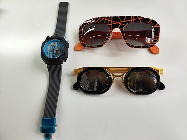 “Per i papillon ho ripreso l’idea della mia prima collezione di occhiali ‘Pixel’, creata circa 10 anni fa. Abbiamo cominciato la nostra avventura nel settore eyewear con i modelli Pixel prodotti in 3D, che rappresentano una sorta di dichiarazione del nostro DNA come marchio. La seconda linea è invece basata sul concetto di intersezione di forme ed è composta da occhiali, bracciali e orecchini. Infine la terza famiglia di prodotti, ispirata a tutto ciò che è urban: una linea ricca di elementi industriali, con materiali grezzi. Per esempio abbiamo il modello ‘Oblò’, che ricorda il finestrino di un aereo, oppure ci sono riferimenti alle strade di una città. Questa linea include anche orologi, che sono accessori molto urban. Il cinturino è fatto in caucciù ed è prodotto in Svizzera in edizione limitata (500 pezzi). È stato difficile trovare qualcuno che accettasse di realizzare una produzione limitata, perché la Svizzera è abituata a produrre collezioni di orologi in grandi quantità, ma ci siamo riusciti e li abbiamo venduti quasi tutti”.