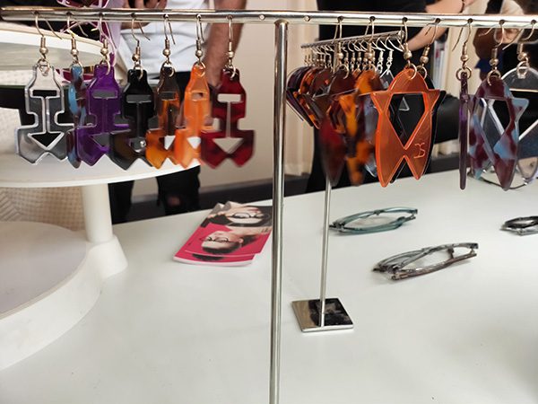“Intanto perché sono fatti dello stesso materiale degli occhiali e poi perché è sempre simpatico avere qualcosa in più da offrire oltre alle montature: i papillon, gli orecchini… sono complementi che con gli occhiali stanno molto bene“.