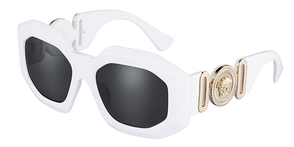 Lo spirito Versace si rinnova con un’estetica contemporanea e tratti femminili audaci. Contraddistinto dall’iconico medaglione Medusa Biggie sulle aste, questo modello da sole oversize è ulteriormente valorizzato dalla calzata universale. Disponibile in bianco con lenti grigio scuro e in rosso trasparente con lenti fucsia.