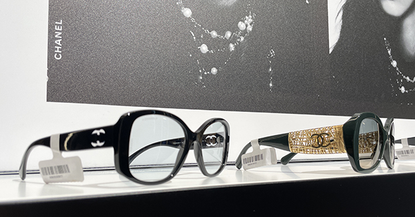 Logomania anche per il brand francese che passa da un estremo all’altro proponendo un modello con asta gioiello gold e logo in rilievo che si contrappone al modello minimal dove le due C intrecciate del logo giocano con la trasparenza e una dimensione ridotta