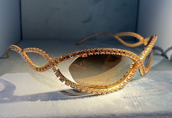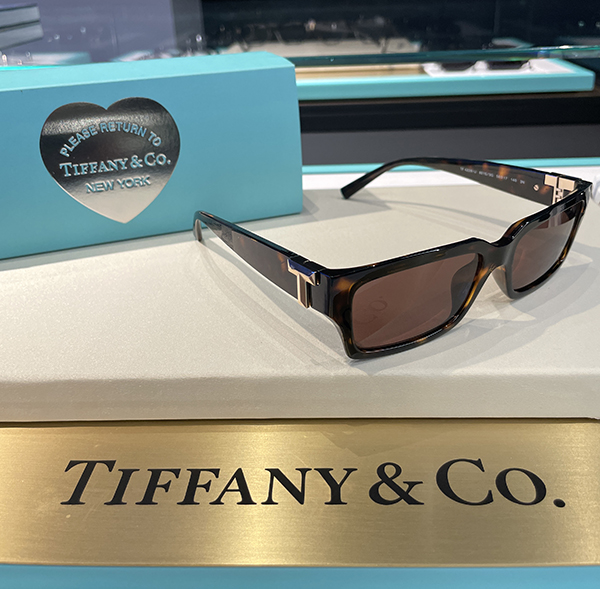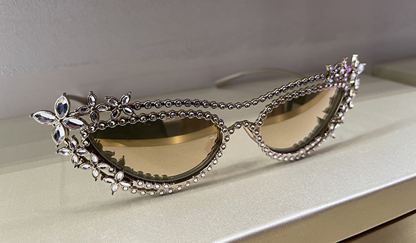 Molto interessante anche l’occhiale gioiello in metallo placcato oro dalla forma cat eye che si ispira ai leggendari tagli di diamanti di Tiffany. In edizione limitata sono decorati con 172 cristalli incastonati a mano che evocano motivi floreali e lenti a specchio platino