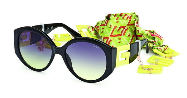 Modello da sole dalla forma rotonda, con aste bold caratterizzate dalla presenza dell’iconica G di Guess in versione maxi e colorata. La montatura, in materiale bio-based, è accompagnata dalla nuova G Chain in tessuto, abbinata cromaticamente alle aste e alle lenti. 5 i colori fra cui scegliere: giallo, fuxia, azzurro, nero e viola.