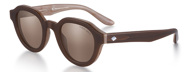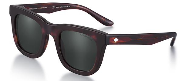 Appartengono alla selezione dedicata alla sos­tenibilità, questi occhiali da sole pieghevoli maschili che uniscono all’eleganza e alla praticità il rispetto per l’ambiente. Realizzati in bio-aceta­to, composto da materiali derivanti da fonti rin­novabili, presentano dettagli metallici funzionali dal design unico, come la cerniera sul ponte con logo Giorgio Armani e i piccoli rombi esterni sul­le aste con personalizzazione incisa a laser, che nascondono le cerniere interne. Le aste, ripor­tano inoltre al loro interno il logo Armani Sus­tainability Values.
