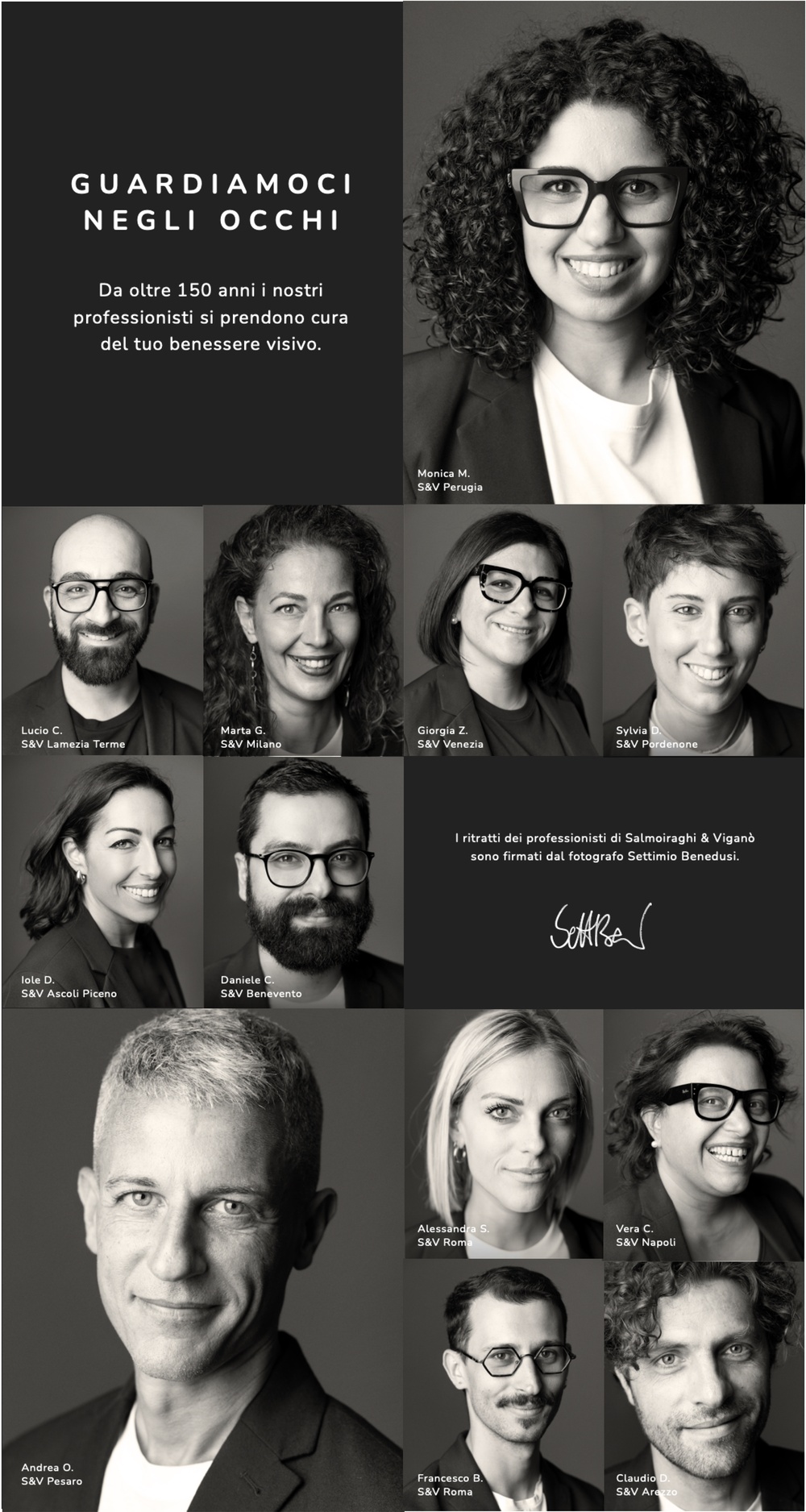 Il 9 ottobre a Torino, nel rinnovato negozio Salmoiraghi & Viganò di via Roma 33, Settimio Benedusi presenzierà anche all’inaugurazione della mostra Gli Occhi Dicono Tutto, dove verranno esposte alcune delle fotografie scattate nel contesto delle campagne “Guardiamoci negli Occhi” del 2024 e “Uniamo i nostri Sguardi” del 2023. Lo scorso anno, infatti, Settimio Benedusi, insieme al team Salmoiraghi & Viganò, si è recato in una clinica di EssilorLuxottica OneSight Foundation, per raccontare, sempre attraverso lo sguardo, la storia delle persone cui la Fondazione fornisce gratuitamente visite oculistiche e occhiali correttivi. La Fondazione OneSight EssilorLuxottica ha infatti la missione di curare i difetti visivi non corretti nel mondo e in Italia, e da anni Salmoiraghi & Viganò ne supporta la missione grazie al volontariato dei propri ottici e alle donazioni dei propri clienti.