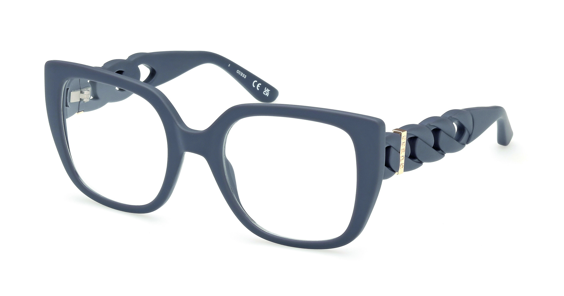 Modello da vista squadrato con design che richiama una classica shape a farfalla. La montatura è contraddistinta dal colore che anima l’innovativo look delle aste, che riproduce l’iconica chain degli accessori GUESS.