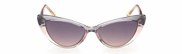 Il frontale arrotondato in acetato con ponte a chiave – abbinato ad aste in acetato con il G logo in rilievo – è declinato in nuance sfumate dall’animo girly di grigio cristallo-rosa-pesca sfumato, bacca-beige sfumato e rosa-viola-lilla sfumato.