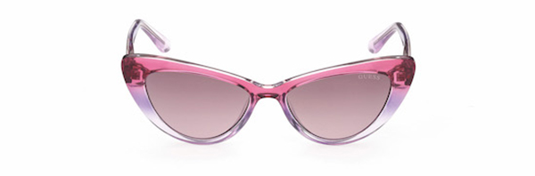 Occhiale da sole ultra-femminile per girls che rappresenta un remake in versione mini-me di un modello della collezione Donna di GUESS: silhouette cat-eye e aste in acetato con il G logo in rilievo in metallo. Una proposta carina e graziosa disponibile in nero pieno, grigio cristallo-rosa-pesca sfumato, bacca-beige sfumato e rosa-viola-lilla sfumato.