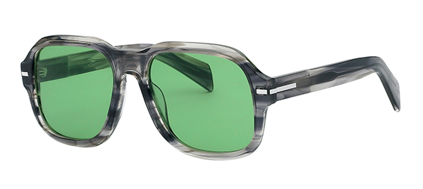Look incisivo e cromie impattanti per Pierre un modello con lenti aperitivo in pendant con la montatura in acetato bolo abbina le lenti marroni alla montatura tartarugata, azzurre sul blu e – a contrasto – verdi sul grigio.
