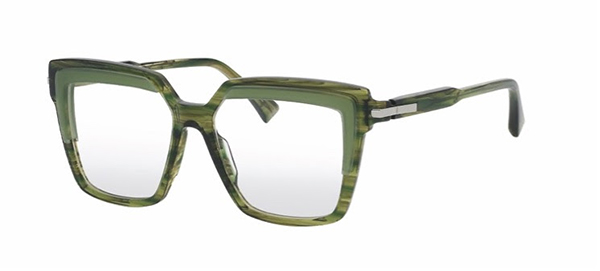 Il modello Diana – dea della caccia, frequentatrice di boschi, montagne e fresche radure – sfoggia delle linee audaci. La forma è ovale, in acetato, ma con il frontale superiore a zig-zag e inserto in metallo. L’asta è poligonale e le scelte cromatiche fantasiose: si passa dal frontale nero e asta black&white optical, o viceversa, al tartaruga dai toni Havana con asta en pendant; disponibile anche in verde con asta nera.