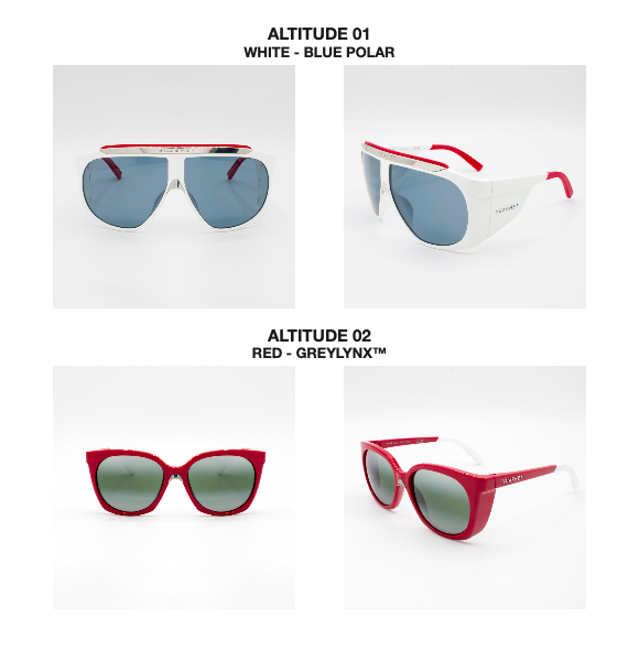L’offerta Outdoor include tre nuovi modelli realizzati in bio-nylon e ispirati alle maschere da sci vintage – Altitude 01, 02 e 03 – a cui si aggiungono ICE e Racing per completare la linea. Altitude 01 offre una protezione completa grazie alla calzata a maschera e alla visiera superiore. Altitude 02 aggiorna la classica forma cat-eye con scudi laterali integrati. Altitude 03 è audace con la sua forma angolare delle lenti e la barra sopraccigliare piatta, e presenta schermi laterali integrati per la protezione dai riflessi. Altitude 01 è dotato di lenti in policarbonato organico, mentre Altitude 02 e 03 sono equipaggiati con le tipiche lenti in vetro minerale Vuarnet.