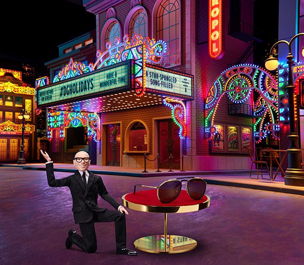 Il video della campagna #DGHolidays 2021 è un progetto speciale realizzato in stop motion, ottenuto da animazioni in studio ambientate in una scenografia interamente realizzata a mano che riproduce una tipica strada dei teatri. I piccoli manichini raffiguranti Domenico Dolce e Stefano Gabbana, protagonisti di questo entusiasmante spettacolo, sono stati modellati e stampati in 3D, con articolazioni appositamente progettate per consentirne i micromovimenti. I volti e gli accessori delle miniature sono stati rifiniti e dipinti a mano, e gli abiti confezionati su misura nelle sartorie Dolce&Gabbana.