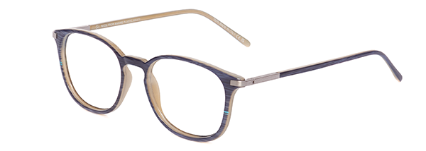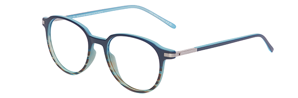 HUDSON 164 – Una montatura ispirata al classico pantos, che combina il blu profondo e il blu marino con il marrone, creando un effetto striato nella parte inferiore del frontale