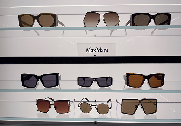 Anche Max Mara conferma il suo stile elegante e raffinato con il dettaglio gioiello “Maxim”, incastonato nelle montature e già utilizzato in collezioni precedenti, a testimonianza di una continuità stilistica che valorizza l’eleganza senza tempo del brand.