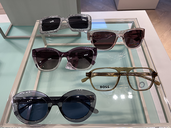 L’acetato è proposto in versione trasparente per un effetto ghiaccio puro e nei toni delicati e femminili del glicine (Privè Revaux) o color cognac per la vista Uomo Boss. Trasparenze anche per Tommy Hilfiger, Polaroid, Missoni e Chiara Ferragni, gli ultimi due con glitter.