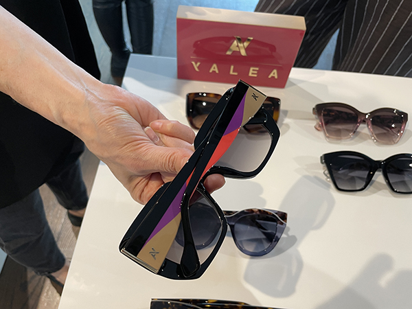 Yalea continua a celebrare il volto femminile con forme tonde e squadrate, arricchite dal dettaglio dell’onda sia sul frontale sia sulle aste dove si osano audaci combinazioni di colore. Da segnalare anche i modelli in acetato dove gli incollaggi giocano con gli abbinamenti cromatici.