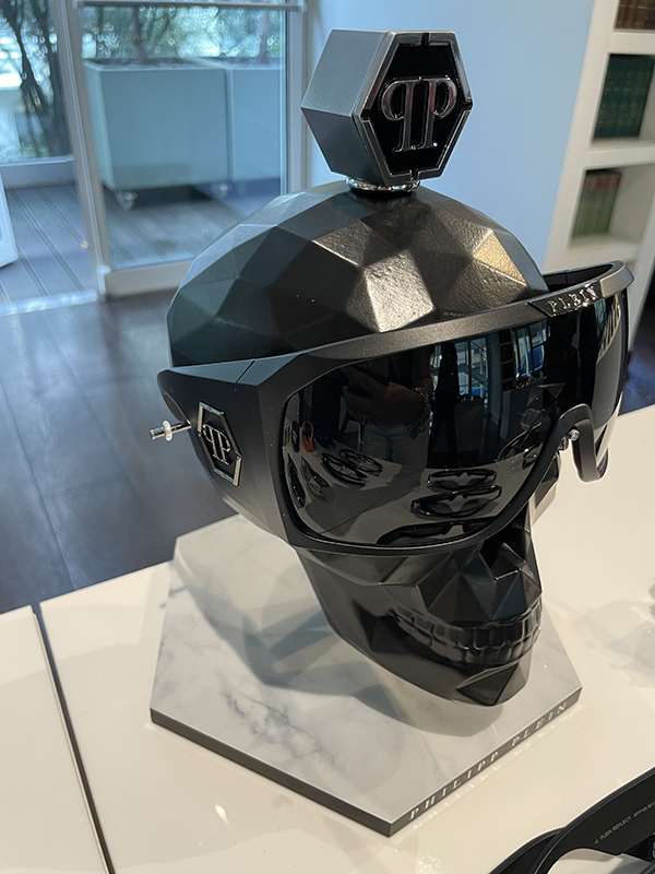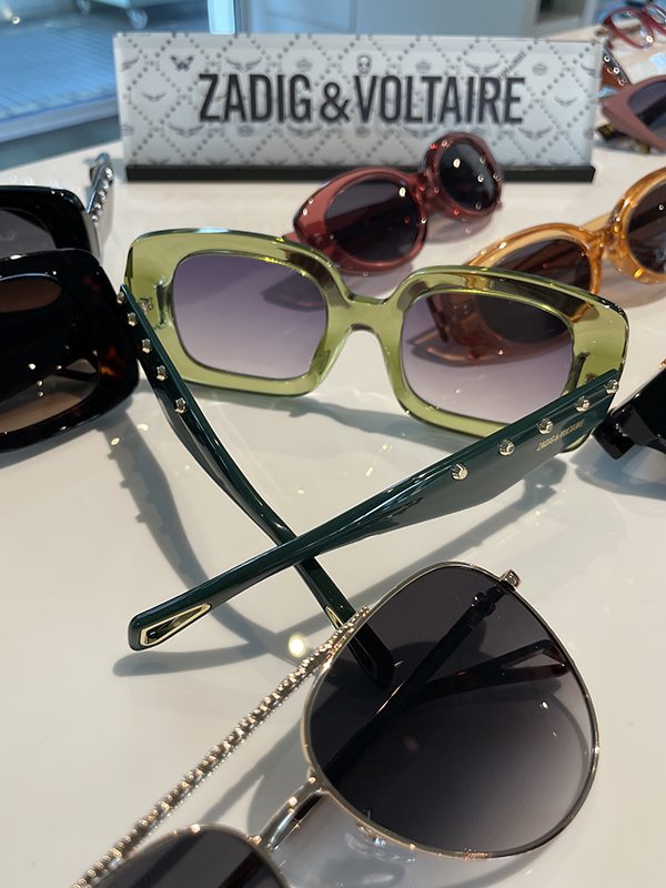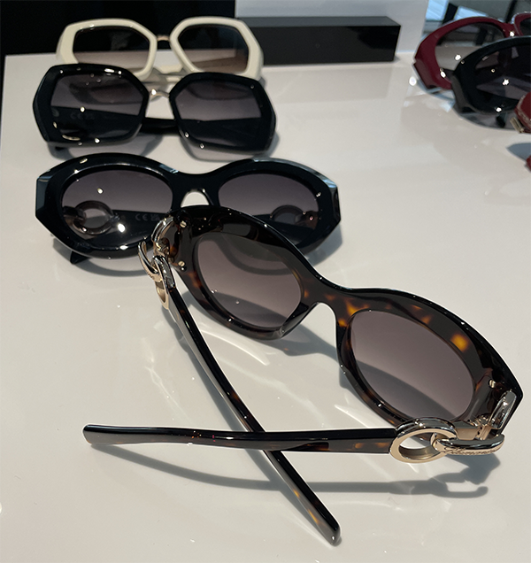 Il brand presenta una limited edition con un modello in cui sono stati incastonati 338 cristalli abbinati a una pochette. Dettagli animali come il dente di tigre o il motivo animalier all’interno delle aste sono riprodotti su alcuni degli altri modelli, mentre il monogramma appare anche su alcune lenti. La collezione si caratterizza per un design geometrico e deciso, con proposte studiate per chi cerca un’estetica forte e originale.