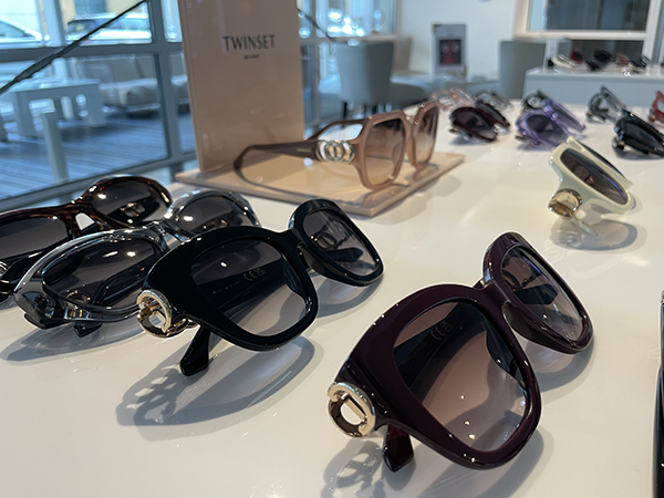Con una collezione delicata e romantica, Twinset gioca con colori tenui e dettagli bohemien. Il logo ovale con la T, le forme a farfalla e i richiami al pizzo rendono ogni occhiale un accessorio femminile e sofisticato.