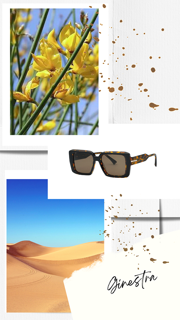 Ginestra è invece il modello dedicato a una delle piante più resistenti – simbolo del coraggio e della resistenza estrema di fronte a un destino inevitabile – infatti pur esposto alla furia distruttrice della natura, si rivela flessibile e resistente come racconta lo stesso Leopardi nell’omonima poesia. L’occhiale porta con sé quest’animo resistente e impavido: un modello squadrato, acetato bold imperioso e imponente, come solo gli occhiali da diva sanno essere. È disponibile in quattro colorazioni: nero pieno, marroncino/rosa, nero marmorizzato e l’Havana scuro classico.