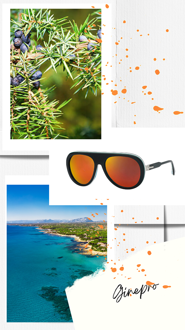Ginepro, modello da sole di MIC, proprio come la pianta di cui porta il nome, diffonde la sua allure: forma a goccia con lente da sole e montatura in acetato bold, con spessore di lastre colorate sovrapposte che si vedono nella parte superiore del frontale e nello spessore stesso dell’asta, in un mix di tinte dato dalla combo lente arancione a contrasto con il nero e dal color verde salvia scuro e bianco degli spessori delle lastre.