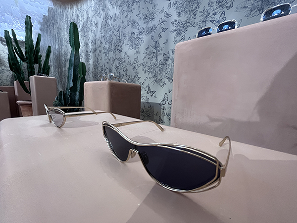 Gli allestimenti dall’ambientazione messicana di Dior riprendono il tema della sfilata dove insieme agli abiti anche gli occhiali hanno calcato la passerella. Nei nuovi modelli il logo della Maison diventa più discreto e si fonde con le cerniere. Accanto ai modelli iconici e ai classici oversize, nella nuova collezione sono stati introdotti per la prima volta dei modelli in metallo alcuni dei quali riprendono le shape anni 50.