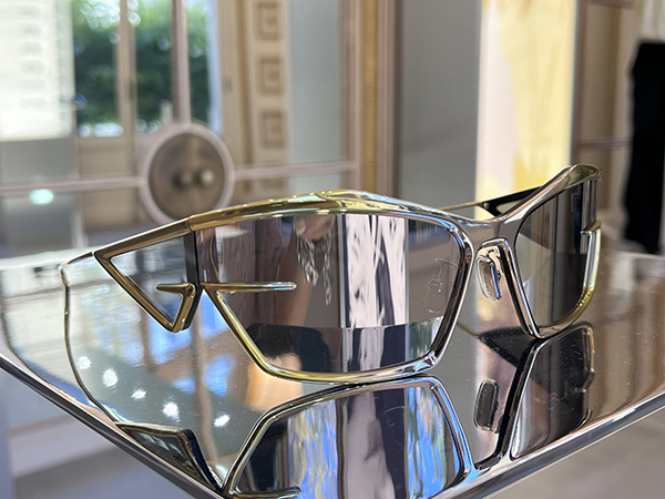 Protagonisti gli iconici e futuristici Giv Cut che rendono omaggio al ricco heritage sartoriale e alla haute couture della Maison Givenchy e che in questa nuova collezione vengono declinati in varie proposte tra cui un modello realizzato con la stampa 3D in metallo. La classica struttura in acetato tridimensionale a base di polvere di nailon, con le lenti che si estendono lateralmente nelle aste ampliando la visuale, evoca la sensuale eleganza che da sempre contraddistingue la Maison. Anche nell’allestimento espositivo Givenchy rispetta lo stile che caratterizza la maison francese così come i modelli più classici che rispettano i codici della Maison e che sono realizzati in nero, bianco e rosso, i tre colori cari a Hubert De Givenchy.
