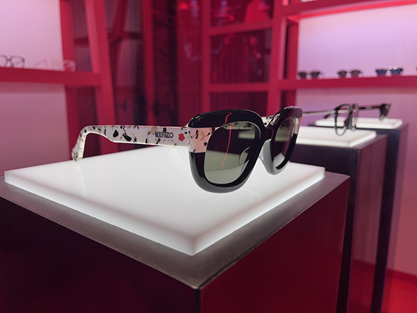 Per Kenzo, il design giapponese della Maison francese si traduce con il bouquet flower che trae ispirazione dalla natura, così come tutta la linea che affianca alle shape classiche modelli d’ispirazione fifty. Il colore rosso, rappresentativo della Maison, lo si ritrova applicato a vari elementi in tutti i modelli.