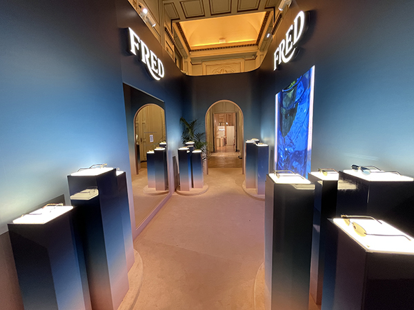 Dalla monumentale porta d’ingresso che si apre su una maestosa scalinata composta da otto varietà di marmo, si accede ai vari ambienti che Thélios ha dedicato ad ognuno dei suoi brand.