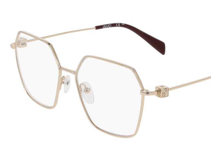 Dal design stiloso e sofisticato, questa montatura da vista geometrica è realizzata in metallo leggero. Sulle aste spicca un dettaglio a cubo in metallo con il logo Liu Jo, che aggiunge un tocco di eleganza giocosa alle linee essenziali della montatura. I naselli regolabili garantiscono una vestibilità confortevole e personalizzata. Protagonista della campagna pubblicitaria Primavera-Estate 2025 nella versione Light Gold, questo modello è disponibile anche nelle varianti Gold Shiny e Rose Gold.