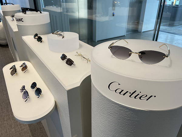 Cartier continua a proporre occhiali di alta classe con la collezione Première, che include montature realizzate con materiali nobili come corno e legno. Tra i modelli più sofisticati troviamo il Clash in più versioni, con il caratteristico dettaglio dello spuntone mobile.