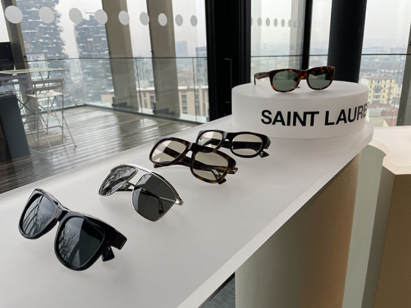 Saint Laurent propone invece una collezione che spazia dal vintage al contemporaneo. I modelli sono impreziositi dal monogramma YSL, che emerge visibilmente sulle montature, spesso in acetato trasparente, una scelta che rende visibile l’anima delle aste. Tra i modelli di punta, troviamo occhiali femminili che giocano sulla silhouette delicata, con il logo smaltato sull’asta e dettagli che ne evidenziano la raffinatezza. Non mancano anche versioni più audaci, come le proposte fashion show, che riprendono linee moderne con finiture esclusive.