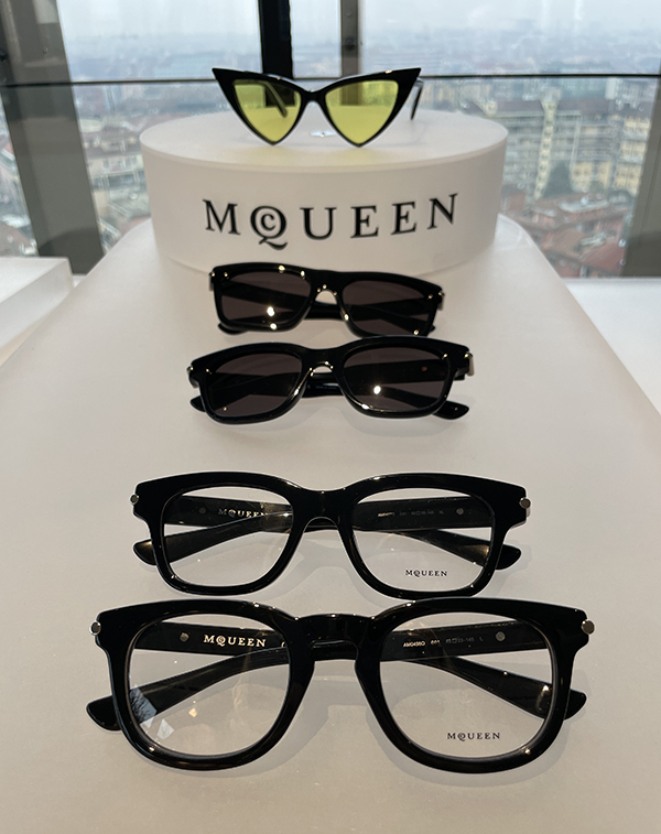 McQueen continua a fare leva sul suo carattere distintivo con occhiali che incarnano il suo spirito iconico. La collezione di quest’anno include modelli che presentano il celebre cross T bar, integrato nelle aste o come cerniera nell’iconica maschera. Inoltre, il nuovo logo McQueen si fa spazio nelle montature, arricchendo il design di un tocco di riconoscibilità unica.