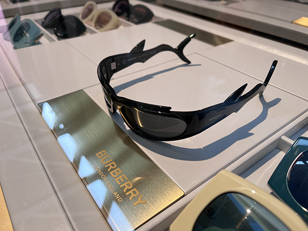 Non più soltanto decorative, le aste sono elementi artistici e identitari per il brand, come per Burberry con il logo lettering in versione big nei modelli in acetato oppure minimal nelle montature in metallo.