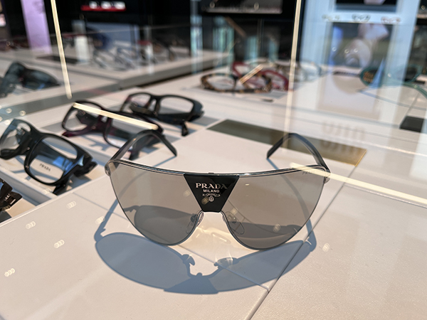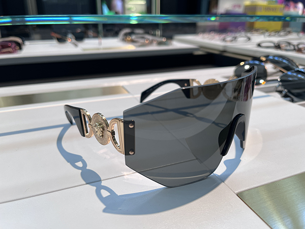Lightweight e glamour per Chanel, classic Seventies per Ralph Lauren, statement anni ’90 per Prada, urban per Vogue, ultra-bold in acetato trasparente per Versace (con logo inserito nell’anima di un’asta decisamente oversize).