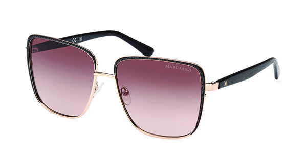 Occhiale dalla montatura squadrata, esclusiva e ricercata. L’audace stampa croco ispirata alle iconiche borse MARCIANO diventa l’anima e la sostanza delle aste, oltre ad impreziosire il profilo del frontale con la sua estetica sofisticata e distintiva.