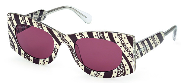 Modello dalla shape avveniristica con stampa Bamako. La lente ovale è inserita in un frontale dalle geometrie decise. La montatura in iniettato è contraddistinta dall’esclusiva stampa Bamako che richiama le fantasie di alcuni dei capi più rappresentativi della capsule collection di abbigliamento disegnata da Duro Olowu per MAX&Co. Forme e fantasie perfettamente armonizzate in un occhiale da sole di grande impatto estetico.