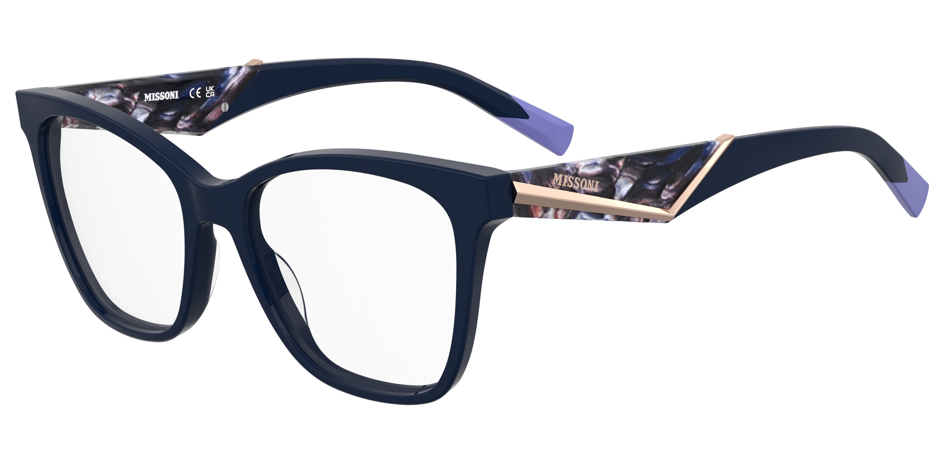 La linea Missoni Seasonal introduce modelli in acetato dalle forme decise e moderne, arricchiti da un motivo triangolare sulle aste. L’alternanza di inserti pieni crea un effetto tridimensionale sofisticato, mentre i terminali in acetato dalla forma a mezzo Zig-Zag completano ogni montatura con un tocco distintivo e discreto.