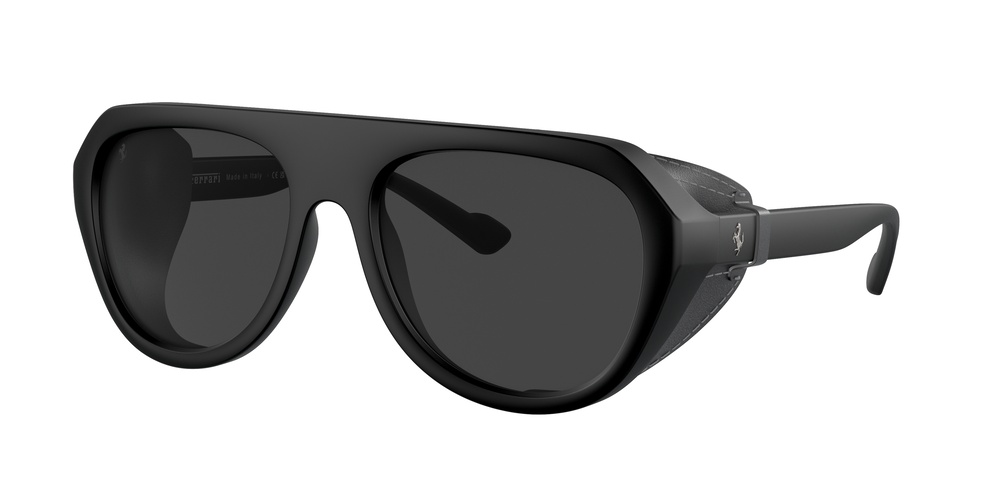 Espressione del temerario DNA di Ferrari, l’imponente silhouette pilot di questo modello contemporaneo presenta un ciliare piatto e aste di grande effetto visivo. Ispirati ai lussuosi sedili in pelle delle Ferrari, frutto di maestria artigianale, i dettagli in pelle collegano frontale e asta. Le inconfondibili impunture e il logo del Cavallino completano l’occhiale, che è declinato in nero opaco con lenti polarizzate grigie Made in Italy.