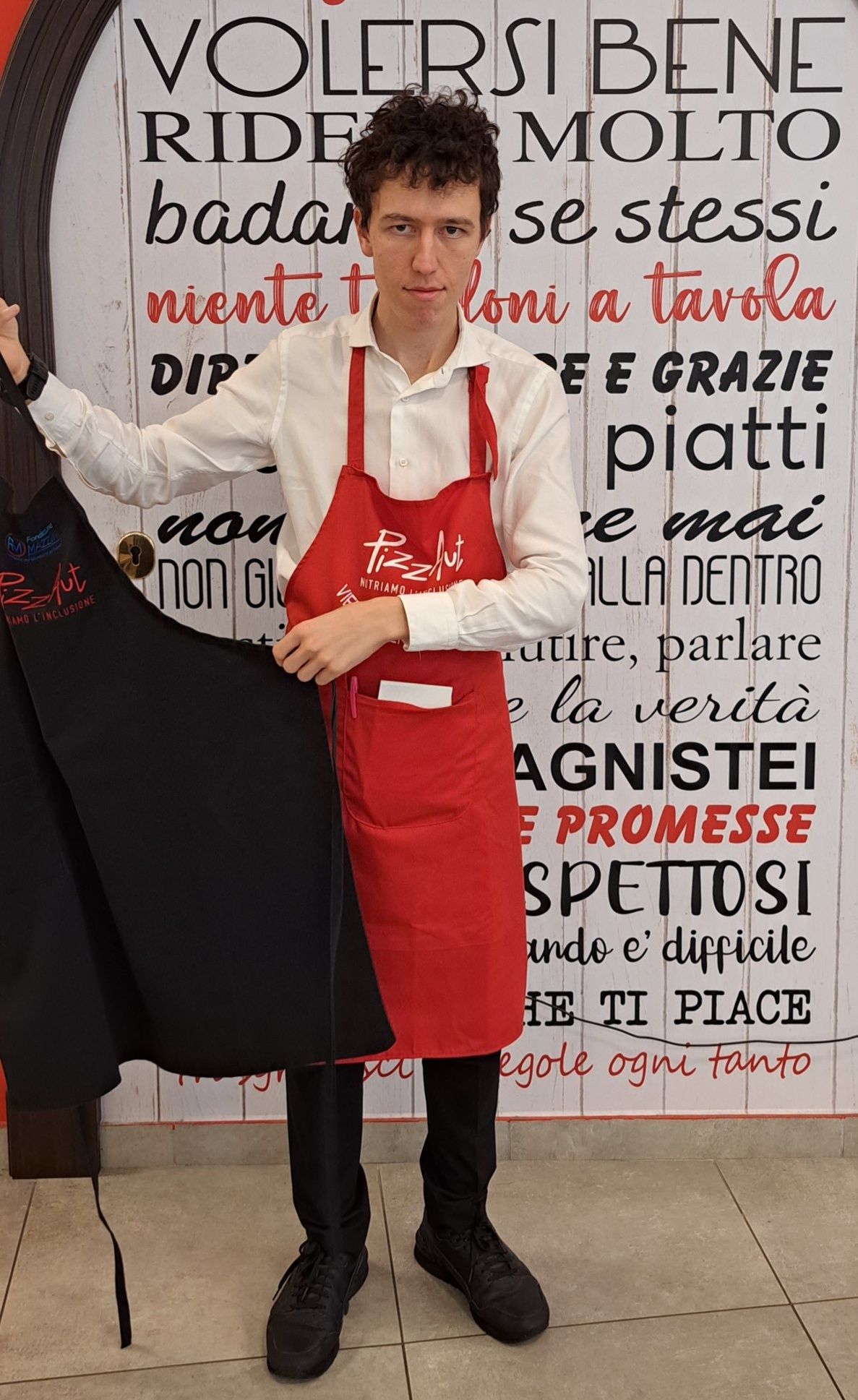 “Sapete cosa vuol dire quando un ragazzo toglie il grembiule nero per mettere il grembiule rosso? È una cosa straordinaria.” spiega il fondatore di PizzAut Nico Acampora “Vuol dire che termina il suo tirocinio formativo perché viene assunto…ed il suo grembiule cambia colore, diventa rosso. Oggi Simone interrompe anticipatamente il suo tirocinio con PizzAut perché viene assunto da NAU!, una cosa che cambia la vita di chiunque…e ancora di più di un ragazzo autistico.” Con questa bellissima testimonianza Nico Acampora annuncia che Simone, giovane tirocinante di PizzAut, è entrato nel team di NAU! e lavorerà presso PizzAut Monza.