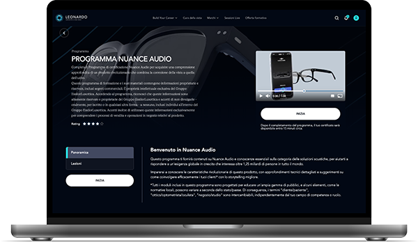 La perdita dell’udito incide sulle relazioni sociali e sul benessere cognitivo, ma l’uso degli apparecchi acustici è ancora limitato. Nuance Audio integra una soluzione uditiva discreta in occhiali smart, offrendo un’esperienza personalizzabile grazie a tecnologie avanzate. Per supportarne la conoscenza, Leonardo, l’ecosistema di EssilorLuxottica, fornisce un programma con certificato, approfondendo ipoacusia, funzionalità del prodotto e strategie di vendita.